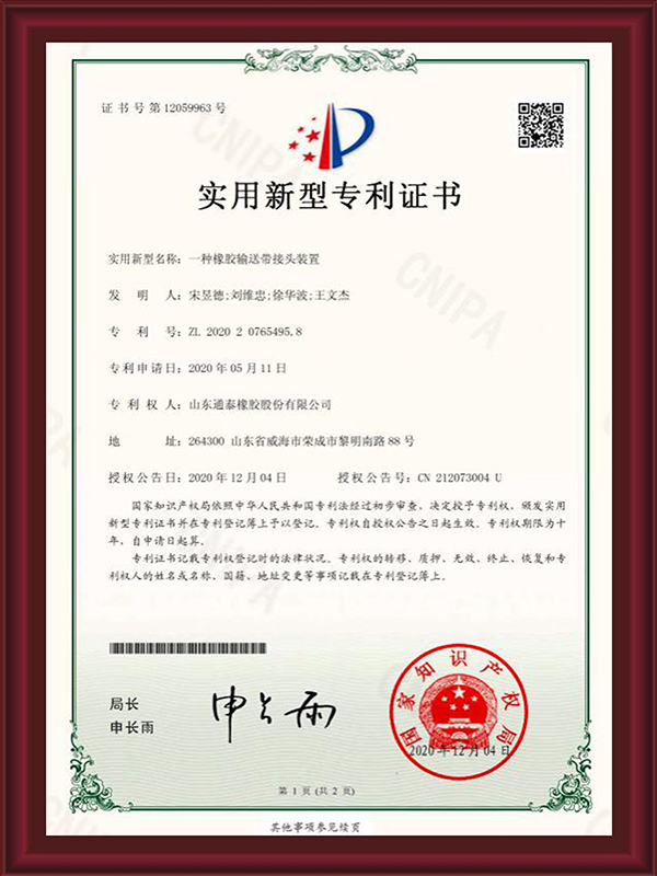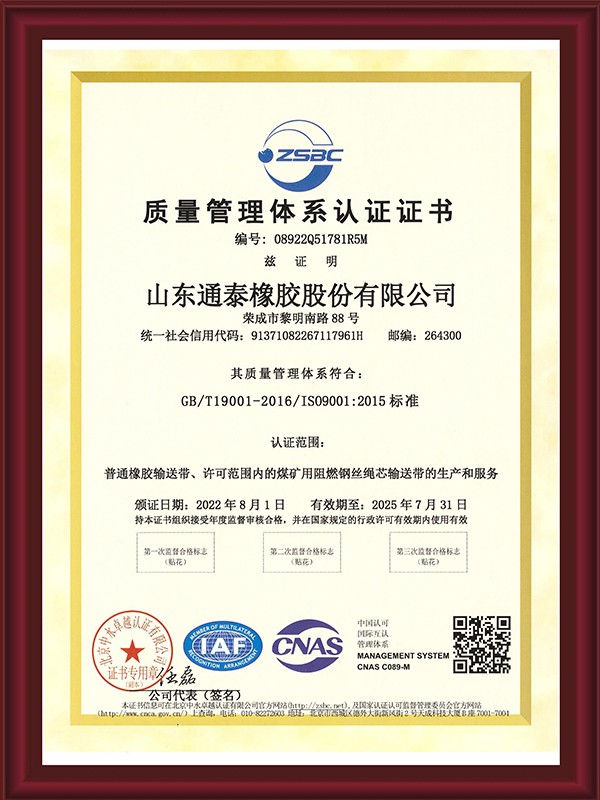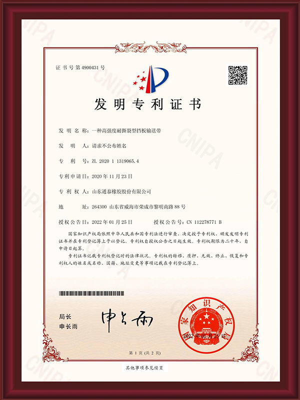 山东通泰橡胶股份有限公司成立于一九九九年,经过二十多年的发展,已成为一个集科研、生产、营销、服务于一体的现代化企业,大倾角波状挡边输送带技术国内领先。