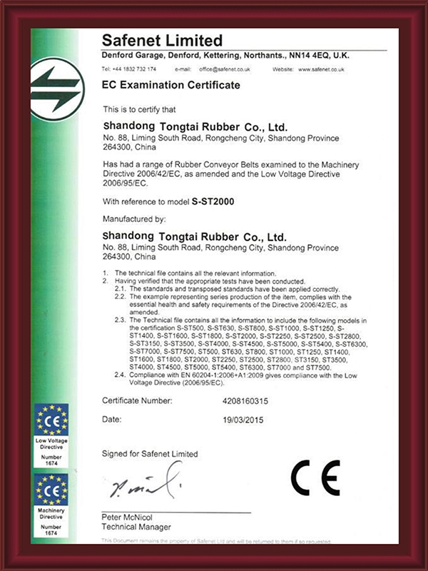 “通泰”牌输送带系列产品,在国内外用户中享有极高的知名度