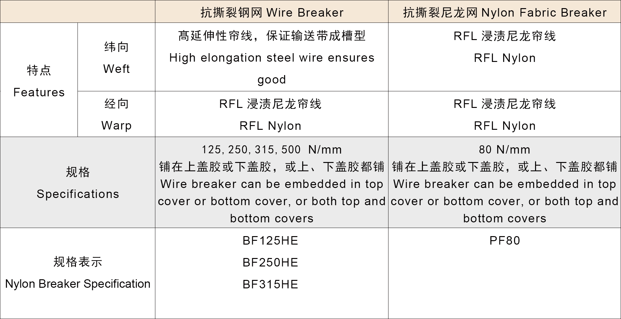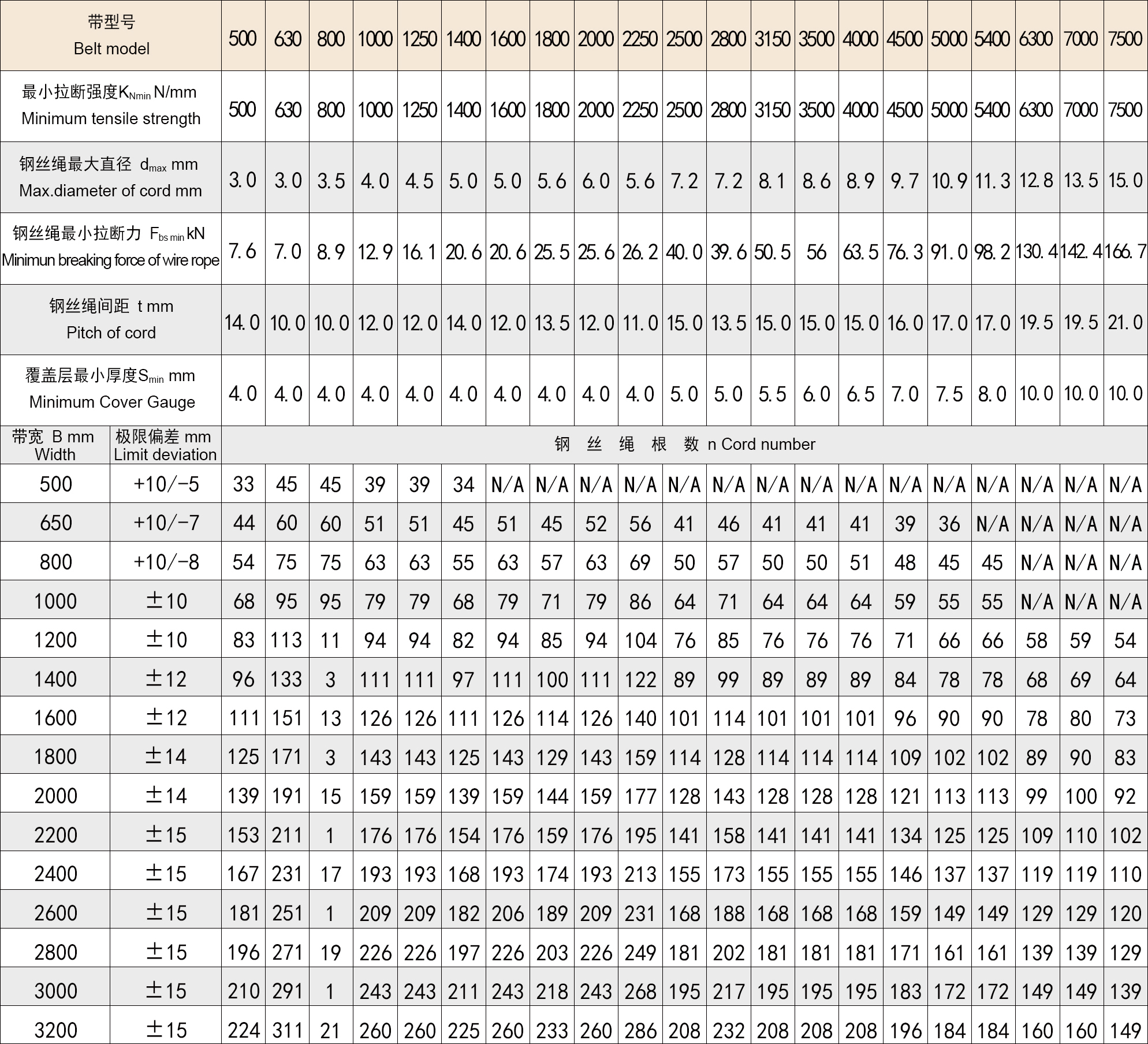 GB/T9770系列钢丝绳芯输送带主要技术参数