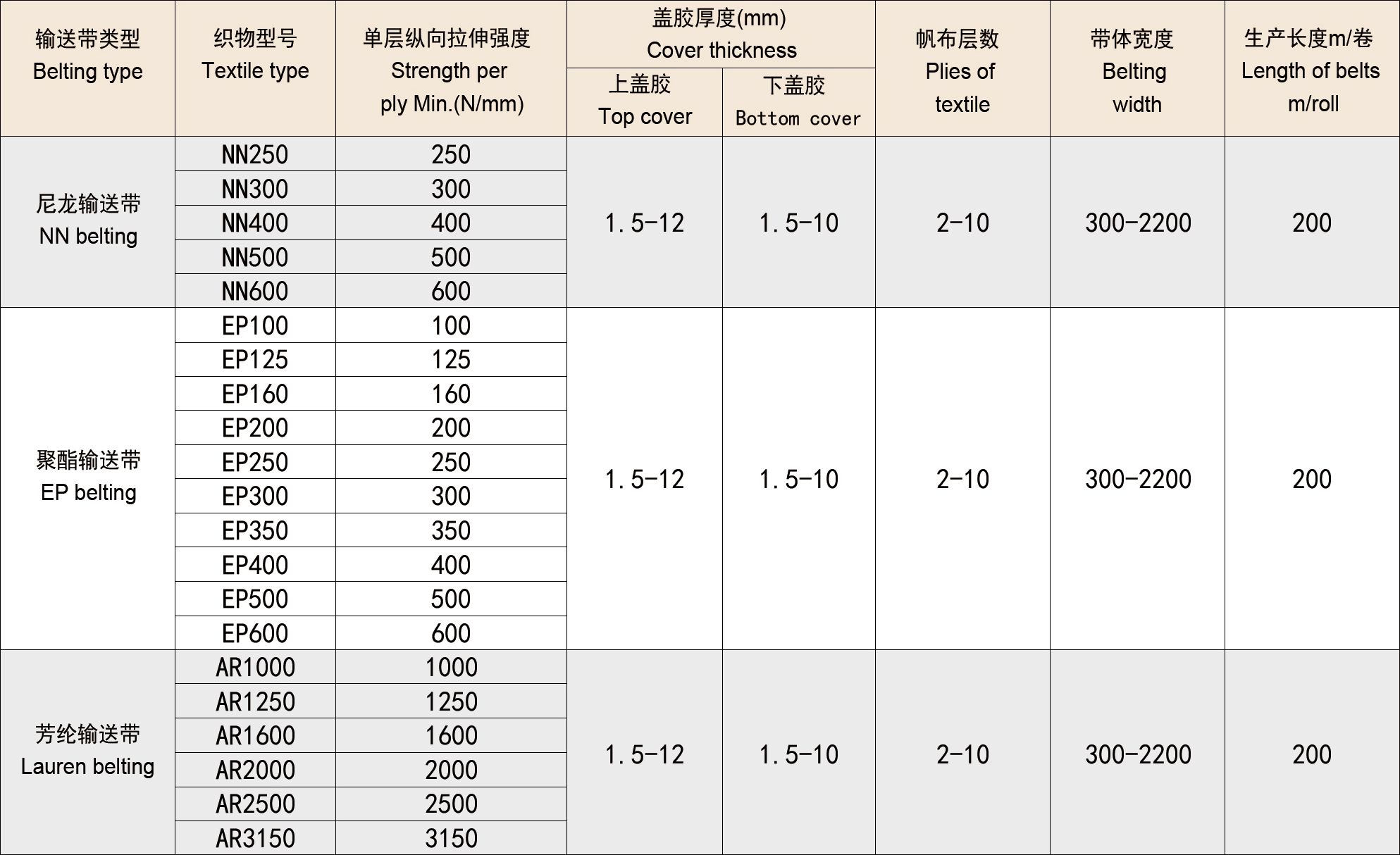 630/4:表示带体纵向拉伸强度为630N/mm带体由四层EP帆布构成