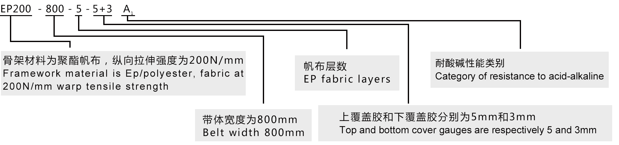 适用于和酸碱接触的工作环境,如磷肥制造、海水晒盐、覆盖胶采用橡塑共混并填充耐酸碱性优异的惰性材料,比氯丁橡胶耐酸碱输送带性能更优。骨架材料采用EP帆布,比棉帆布芯带耐酸碱性能更加可靠。